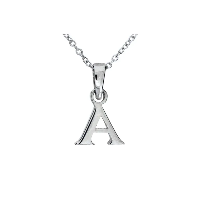 Halsband med berlock bokstav A, kedja ingår. Äkta silver 925.