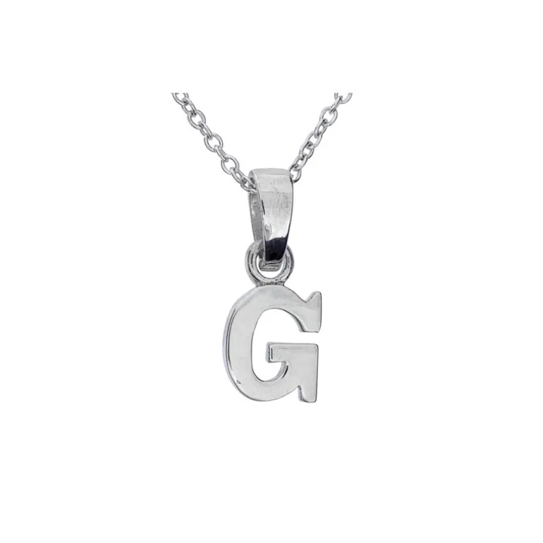 Halsband med berlock bokstav G, kedja ingår. Äkta silver 925.