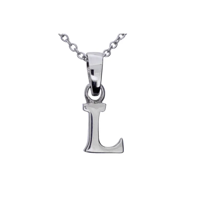 Halsband med berlock bokstav L, kedja ingår. Äkta silver 925.