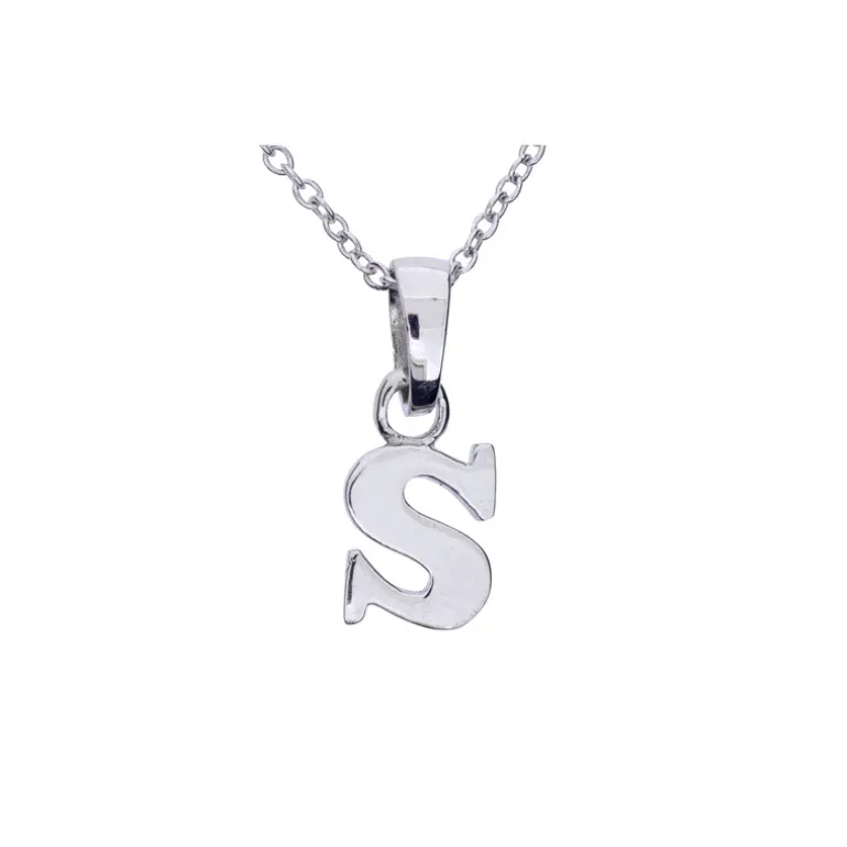 Halsband med berlock bokstav S, kedja ingår. Äkta silver 925.