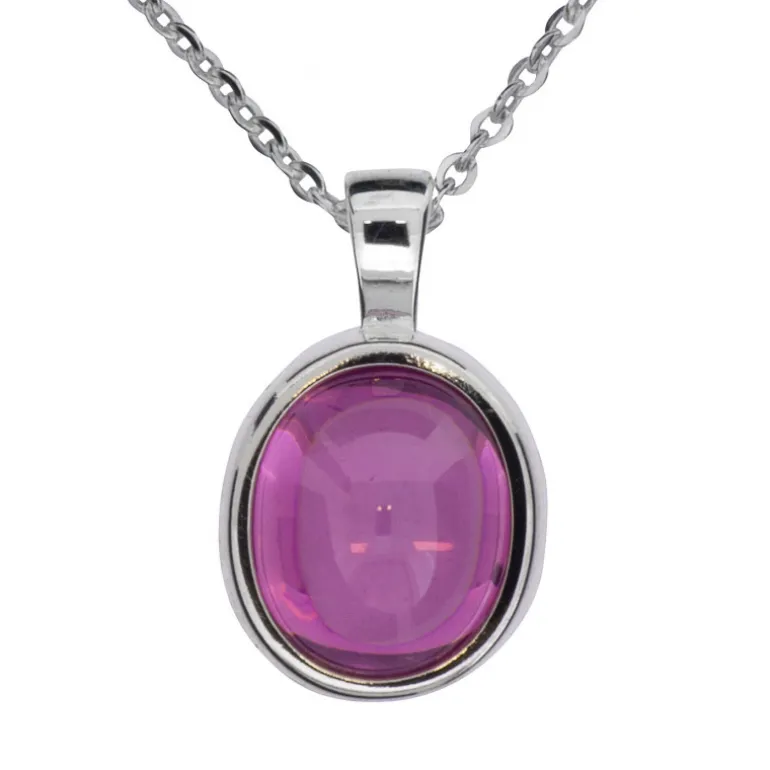 Halsband med rosa oval sten infattad i äkta silver 925, kedja ingår. Lika färg på stenen som oktobers månadssten.