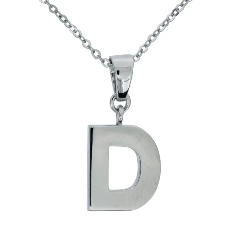 Halsband med stor bokstav D i äkta silver 925, kedja ingår. Höjd på smycket inklusive ögla 23 mm.