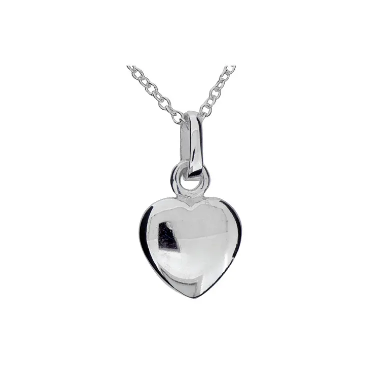 Bulligt silverhjärta, halsband med slätt hjärta i äkta silver 925, kedja ingår.