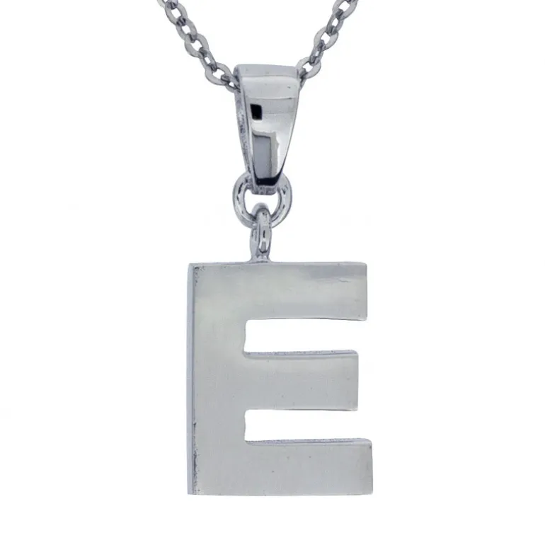 Halsband med smycke och berlock med stor bokstav E, kedja ingår. Äkta silver 925.