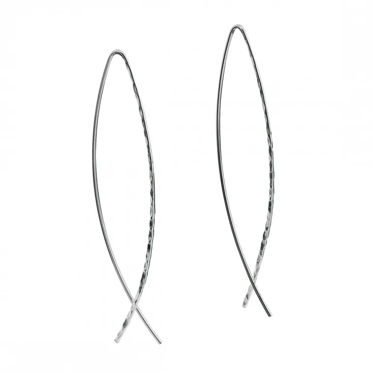 Hängande silverörhängen med hamrad stel silvertråd, längd 53 mm. Äkta silver 925.