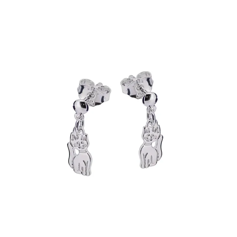 Hängande silveröhängen med katter i äkta silver 925.