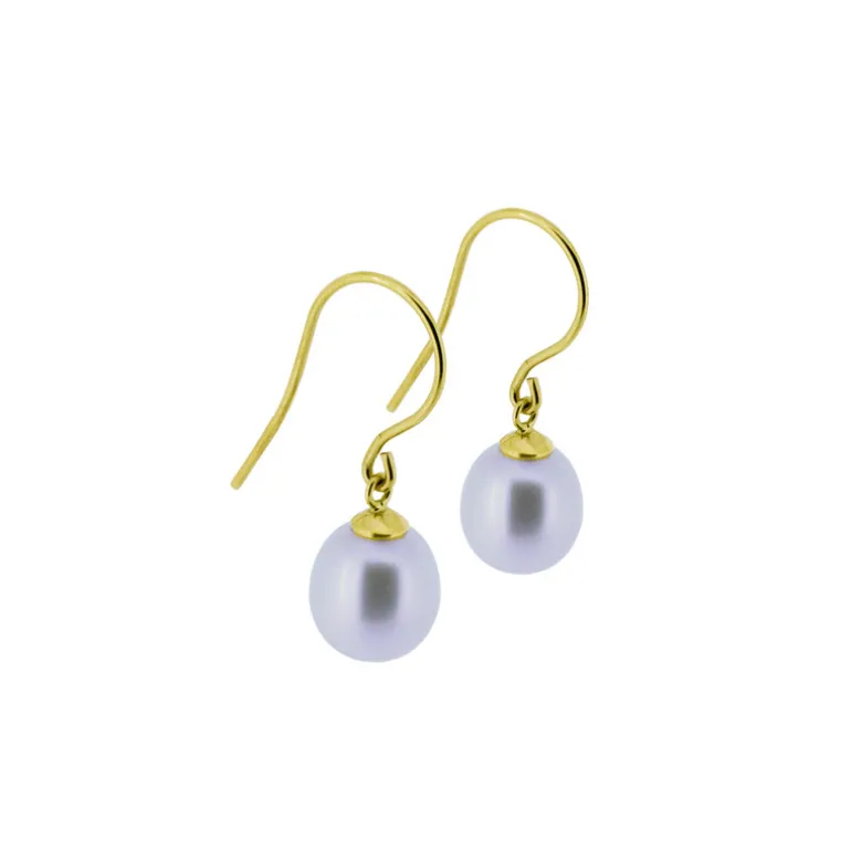 Hängande odlade sötvattenspärlor på krokar i 18K rödguld.