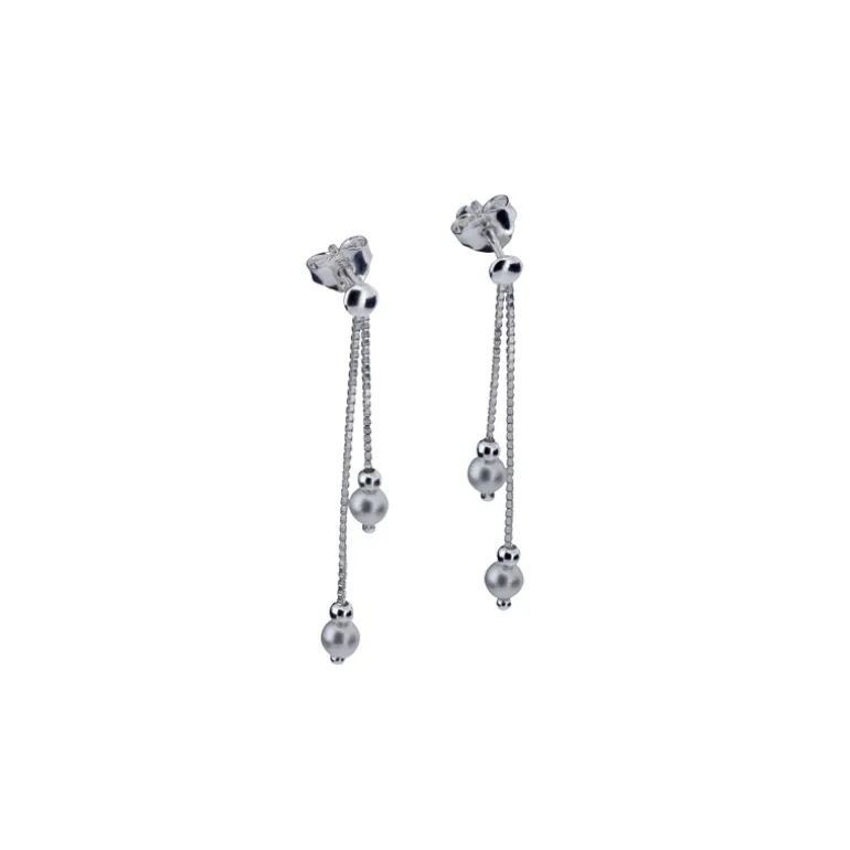 Hängande örhängen med pärlor i äkta silver 925, längd 42 mm.