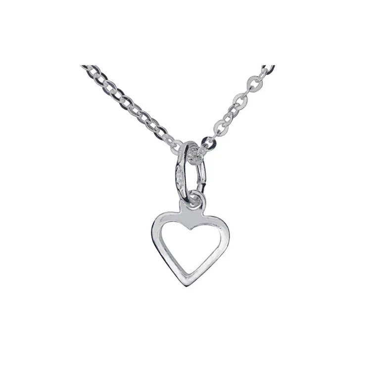 Halsband med smycke litet sött hjärta i kontur i äkta silver.