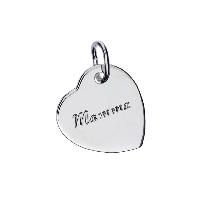 Smycke med hjärta på snedden i äkta silver. Gravyr ingår.