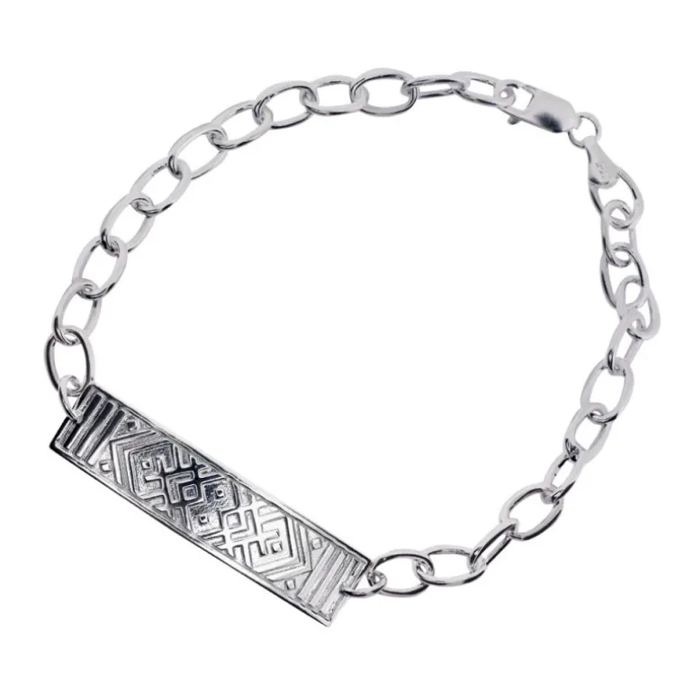 Krusbandsarmband, silverarmband bricka med krusbandsmönster i en bredare och längre kedja som även passar till herr.