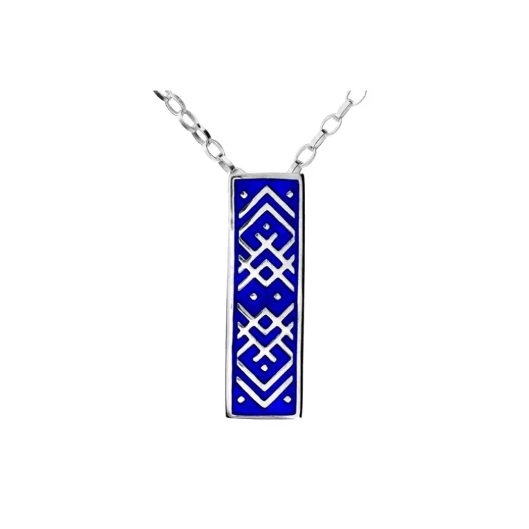 Halsband med blått smycke med mönster från krusband i äkta silver 925.