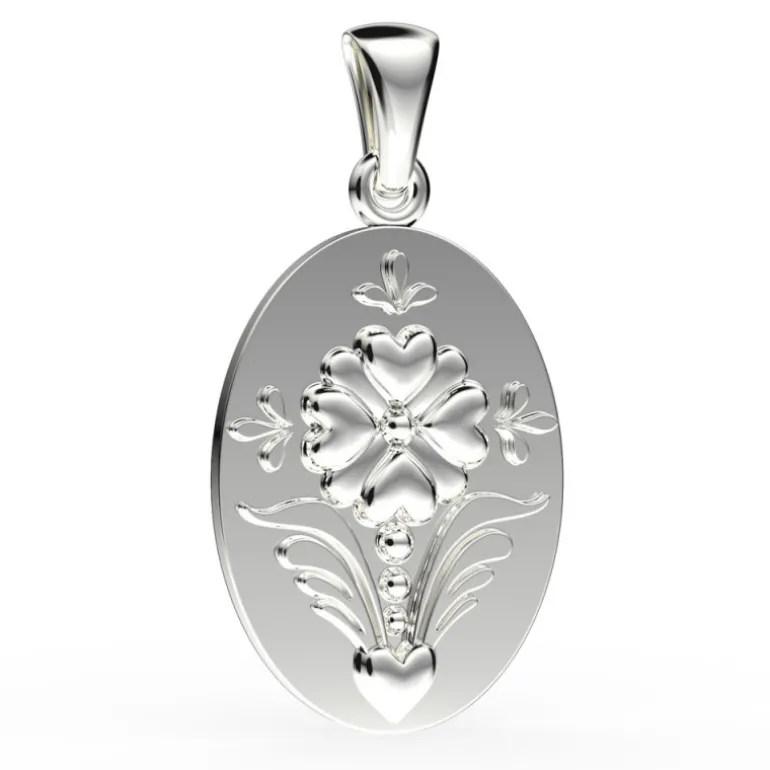 Smycke med fyra hjärtan som bildar en blomma, lyckoklöver, kurbitsblad och dekorationer från vackra kurbitsmålningar.