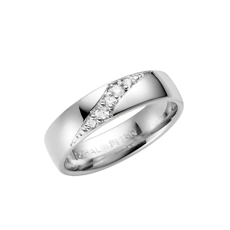 Libra, vigselring med diamanter från Schalins ringar fattade snett över ringen. Kombinera gärna denna alliansring med en slät förlovningsring art nr 720-5.