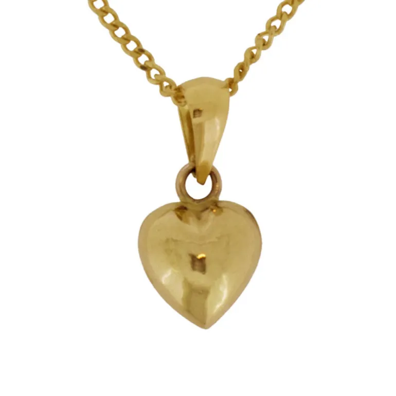 Litet sött guldhjärta och guldkedja i äkta guld 18 karat. Hjärta i guld som berlock och hängsmycke. Fint som dopsmycke och dophalsband.