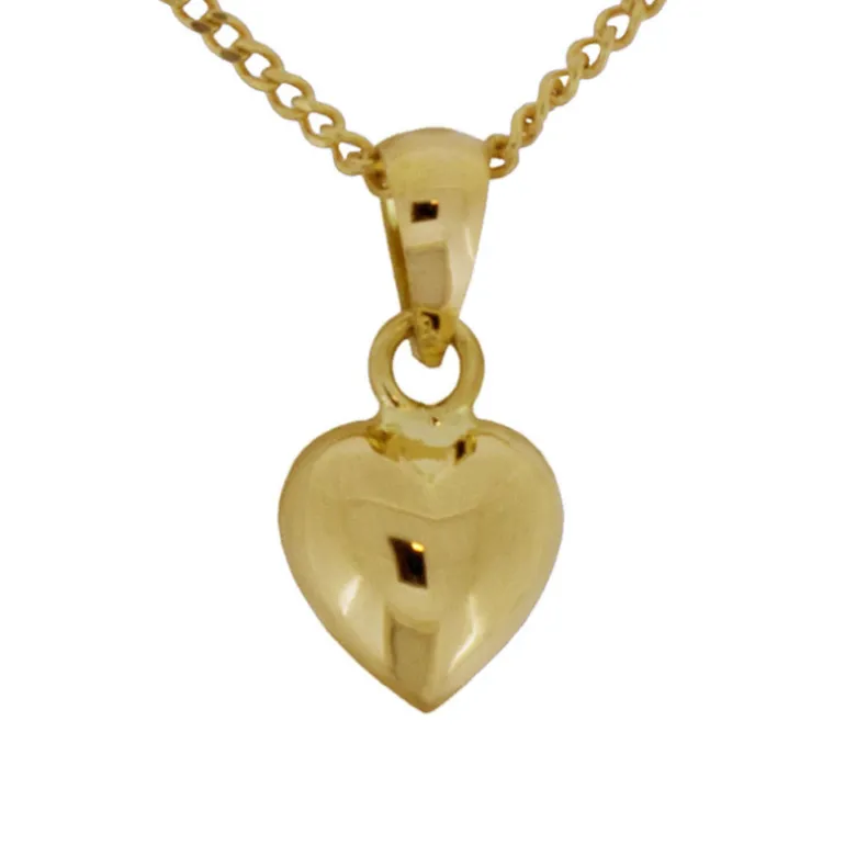 Guldhalsband med guldhjärta till barn, liten berlock hjärta i äkta guld 18 karat med kort kedja modell pansar.