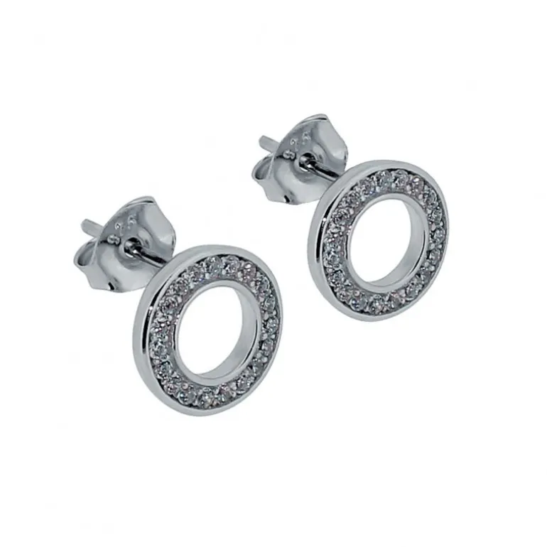 Örhängen med cirklar, vita gnistrande cubik zirkoner infattade i äkta silver 925.