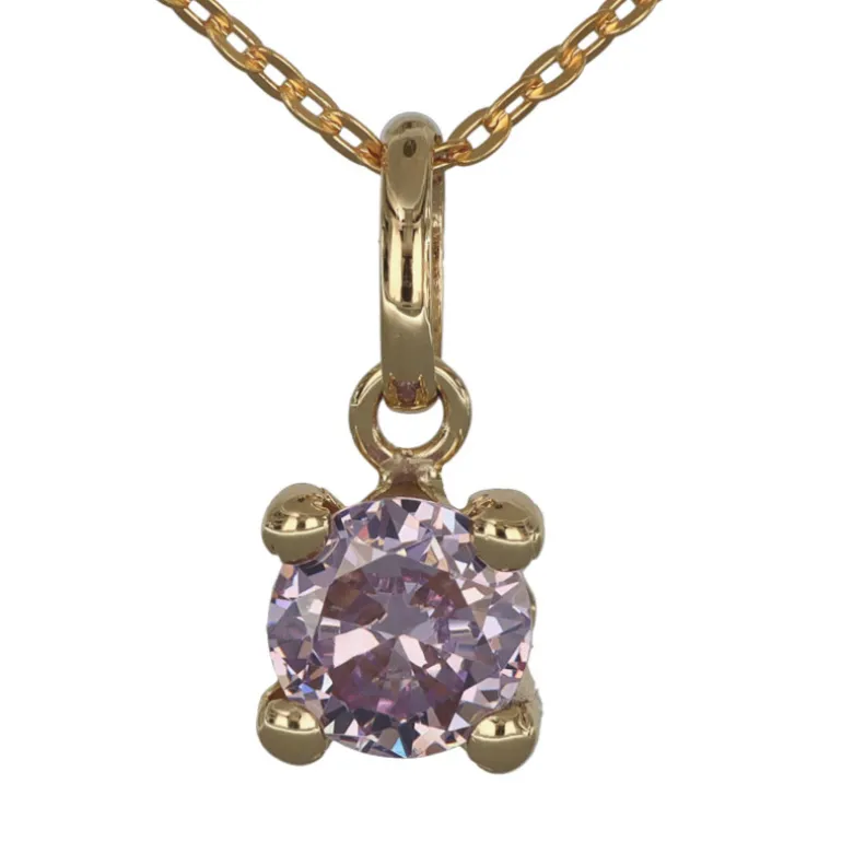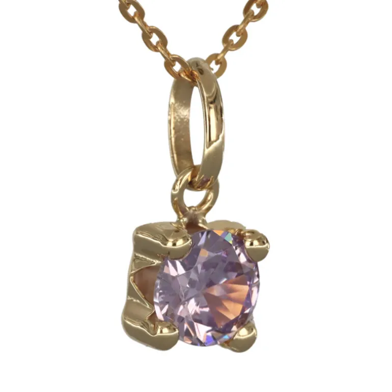 Halsband med månadssten smycke för månad juni i äkta guld 9 karat. Storlek på stenen 5 mm i diameter, höjd på smycket inklusive ögla 11 mm. Färgad syntetisk ljust svagt lila sten. Kedja modell ankar, bredd 0,6 mm artikel 9-50-0001. Material äkta guld 9 karat, det vill säga en blandning, legering, av 37,5% guld och resten silver och koppar.
