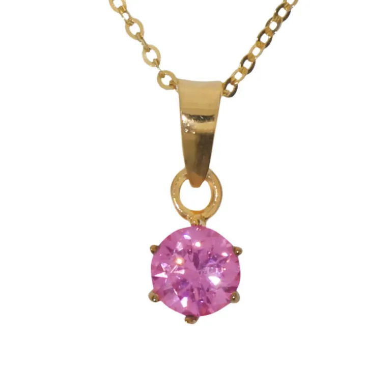 Rosa sten, halsband med månadssten för månaden oktober infattad i guldförgyllt äkta silver 925.