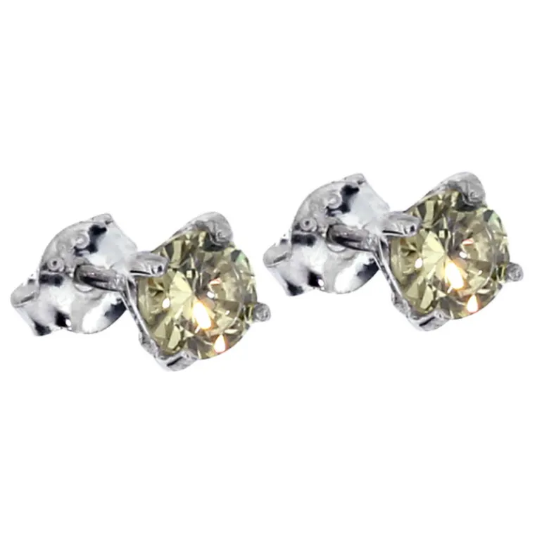 Örhängen med månadssten för månaden augusti, ljusgula stenar i infattade i äkta silver. Diameter 5 mm.
