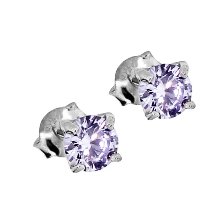 Silverörhängen med ljuslila stenar, månaden junis månadssten, infattad i äkta silver. Diameter 5 mm.