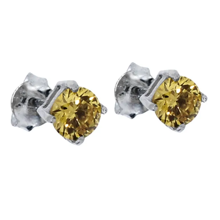 Silverörhängen med orangegula stenar, november månadssten, infattade i äkta silver 925. Diameter 5 mm.