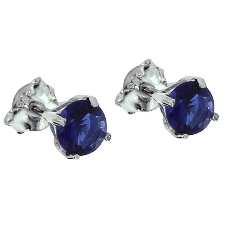 10Silverörhängen med mörkt blå stenar infattade i äkta silver, månadssten för september. Diameter 5 mm.