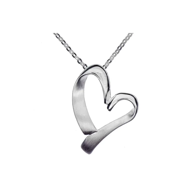 Halsband med vridet matterat och blankt hjärta i äkta silver.