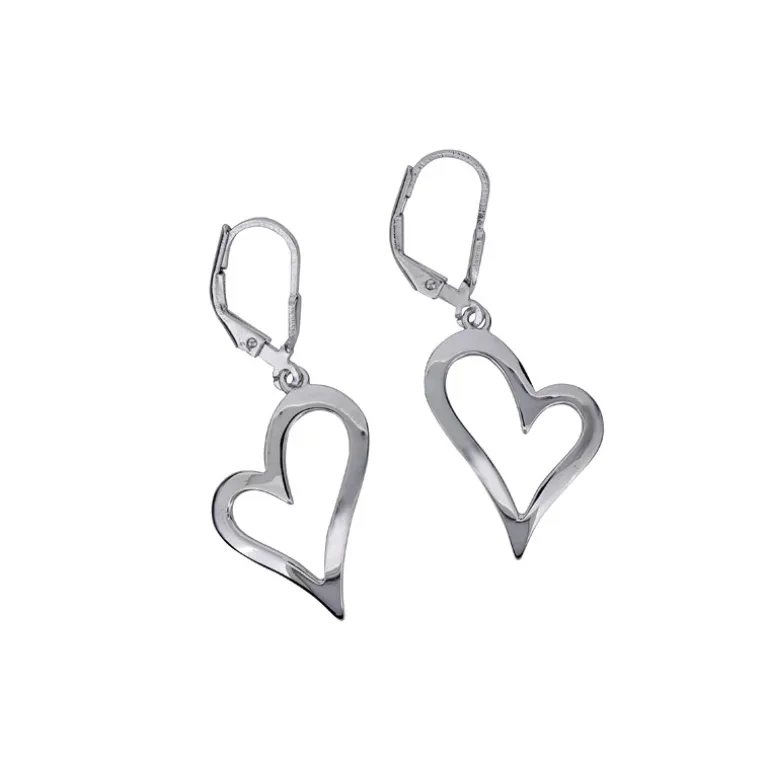 Hängande örhängen i äkta silver 925 med hjärtan på snedden i snygg modell.
