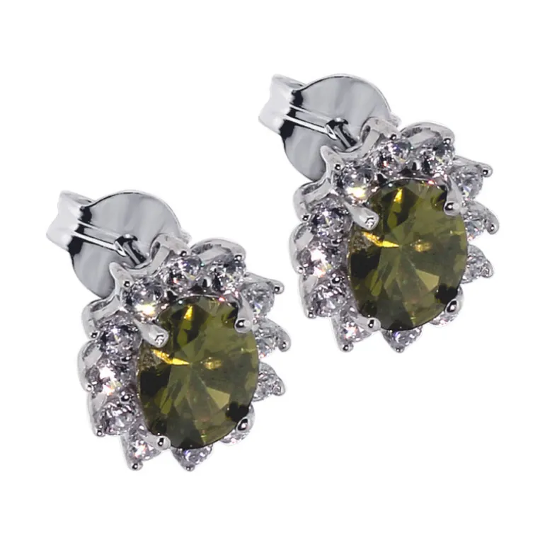 Örhängen carmose med gröna stenar i mitten omgiven av vita stenar, cubik zirkoner runt om. Material äkta silver 925.
