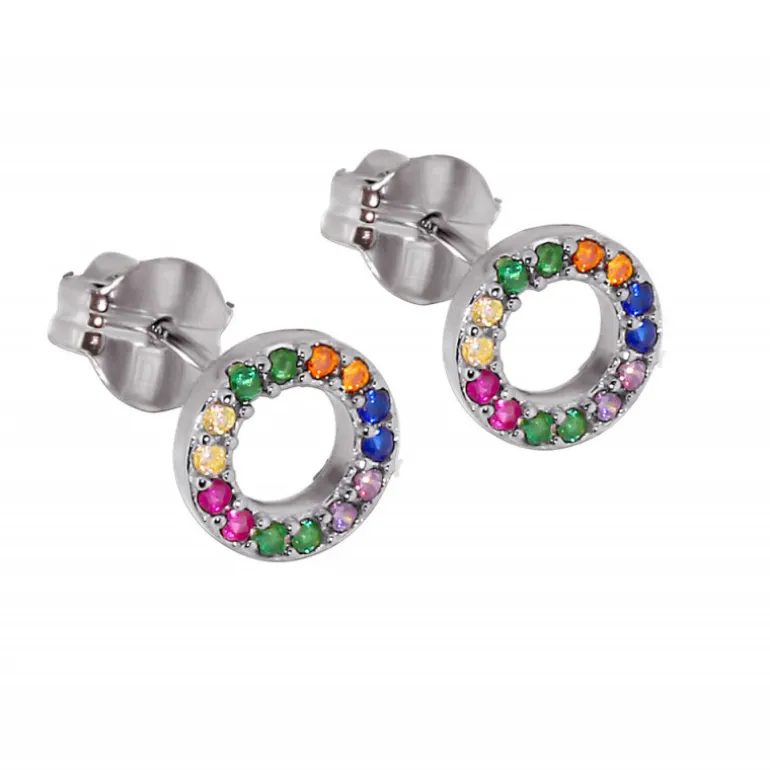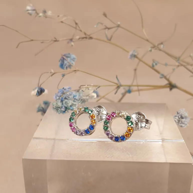 Rainbow, snygga örhängen med färgade stenar i flera olika färger på cirklar. Material äkta silver. Ytterdiameter 8,2 mm.