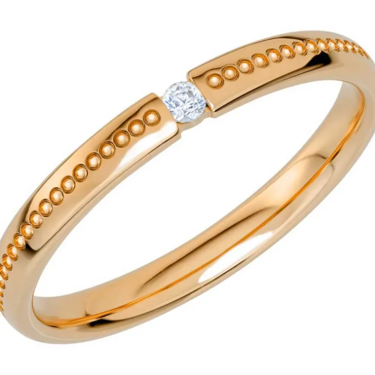 Reflection 10, smal diamantring med mönster som små kulor i mitten och diamant. Tillverkad av Schalins ringar i äkta guld 18 karat.
