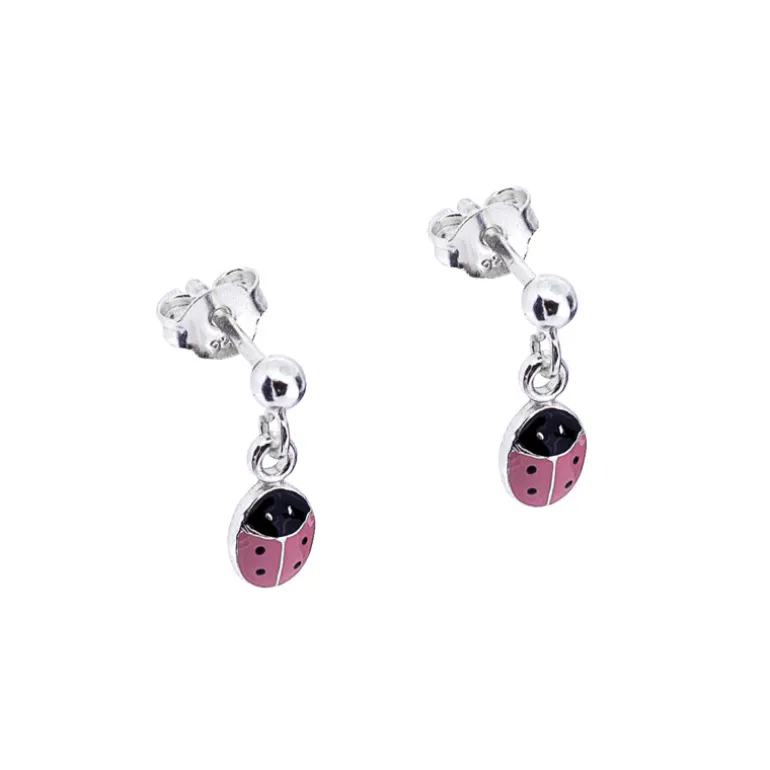Hängande silveröhängen med rosa nyckelpigor i äkta silver 925.
