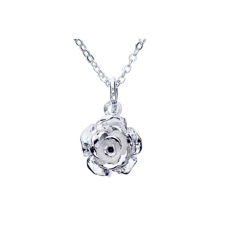Halsband i äkta silver med vacker ros, kedja ingår.