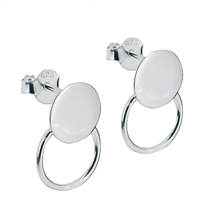 Silverörhängen i enkel snygg modell med tunn ring på en rund rondell, äkta silver 925.