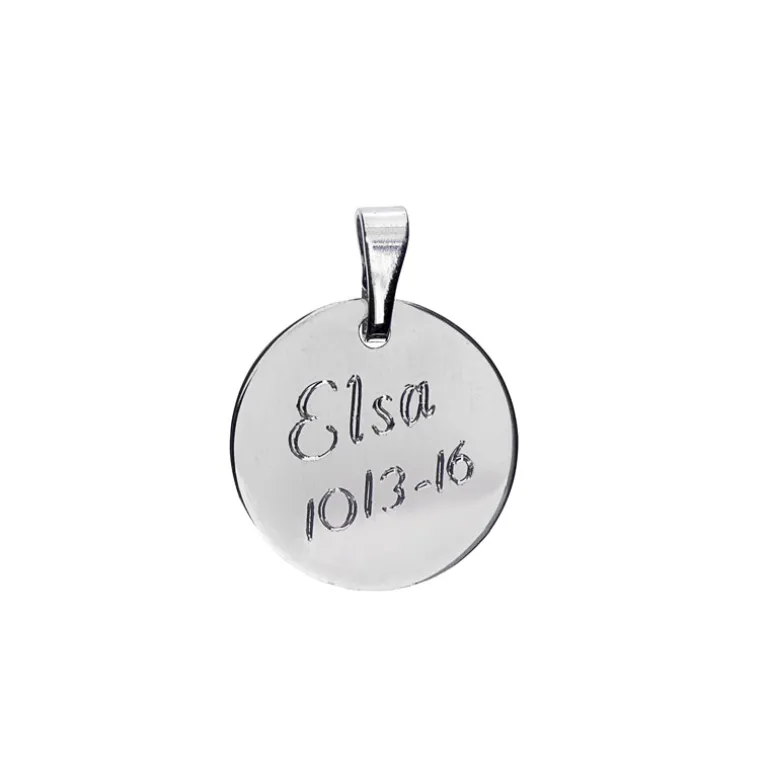 Rund slät berlock i äkta silver 925, gravyr ingår.