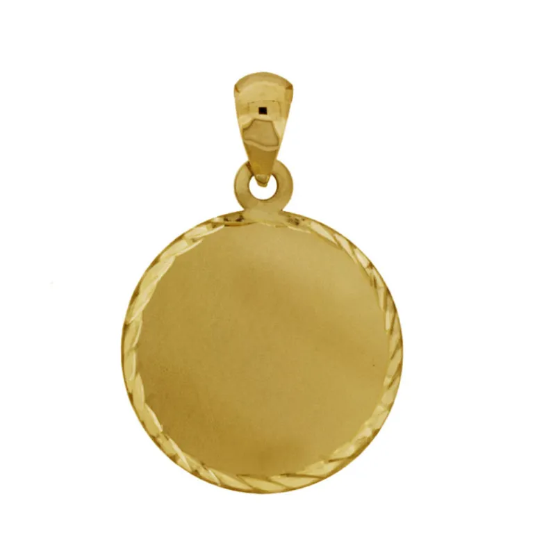 Rund berlock i äkta guld 18 karat med matterad yta och vackra fasetter på kanten. Ytterdiameter 15 mm.