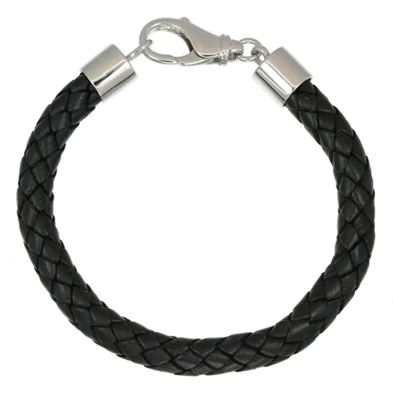 Ryan, svart runt flätat kraftigt läderarmband med lås i äkta silver. Bredd 8,2 mm. Längd 21,5 cm.