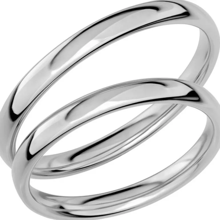 Smal och tunn slät kupad förlovningsring och vigselring i vitt guld Sign of love SR 1002 från Schalins ringar.