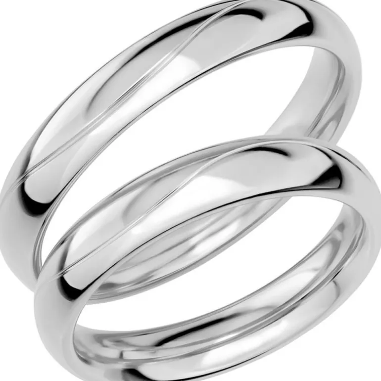 Slät kupad vitguldsring som förlovningsring och vigselring tillverkad av Schalins ringar. Modellen heter Sign of love SR1012.