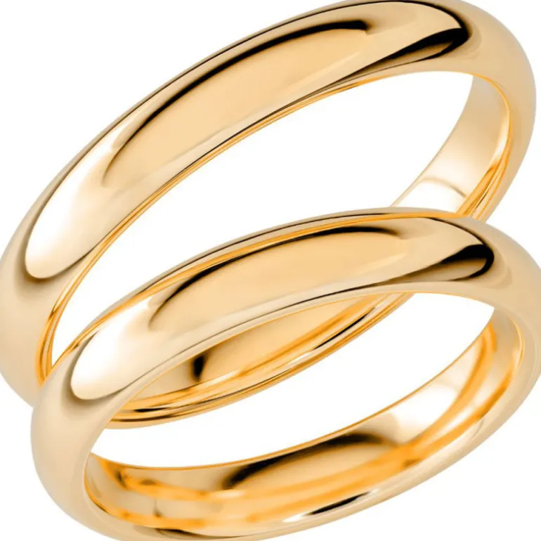 Slät kupad rundad förlovningsring och vigselring i vanligt guld 18 karat, Sign of love SR1025 från Schalins ringar.