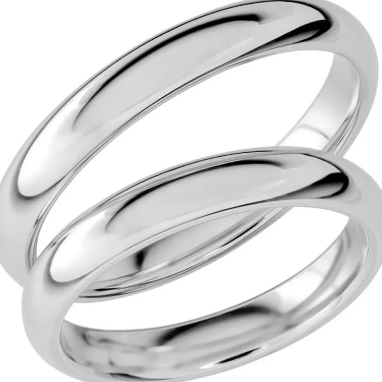 Slät kupad rundad förlovningsring och vigselring i vitt guld 18 karat, Sign of love SR1025 från Schalins ringar.