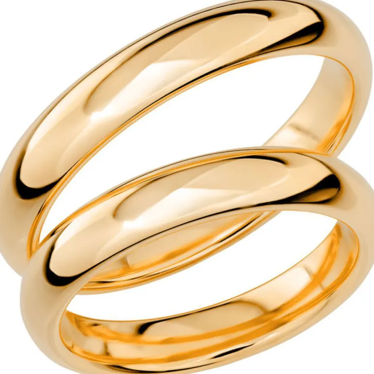 Släta förlovningsringar och vigselringar, klassiskt och snyggt. Rund kupad guldring i vanligt guld 18 karat, Sign of love SR1026 tillverkad av Schalins ringar.