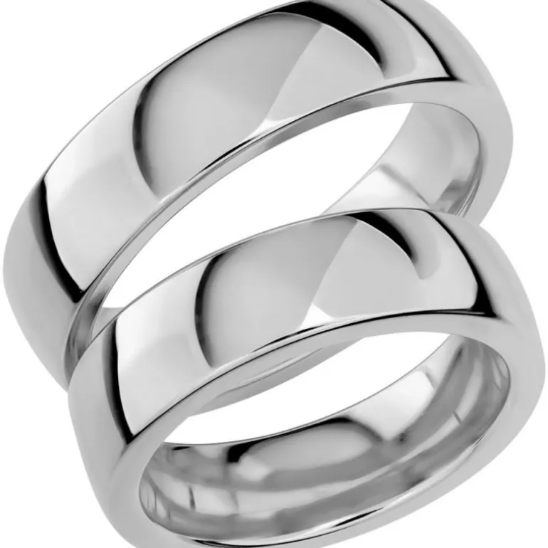 Bred och hög lätt kupad guldring i vitt guld 18 karat, förlovningsringar och vigselringar Sign of love SR1035 tillverkad av Schalins ringar. En ring med härlig tyngd då det är kraftig och tung modell.