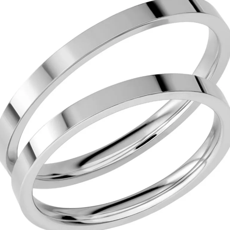 Smal helt slät flack rak förlovningsring och vigselring i vitt guld, Sign of love SR1036 tillverkad av Schalins ringar.