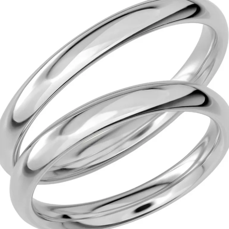 Slät kupad guldring som förlovningsring och vigselring i vitt guld, vitguld 18 karat, Sign of love SR1045 tillverkad av Schalins ringar.