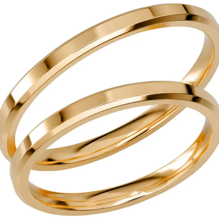 Slät smal guldring med sned fasett, avfasad kant på sidorna. Tillverkad i vanligt guld 18 karat, rödguld, Sign of love SR1050 av Schalins ringar.