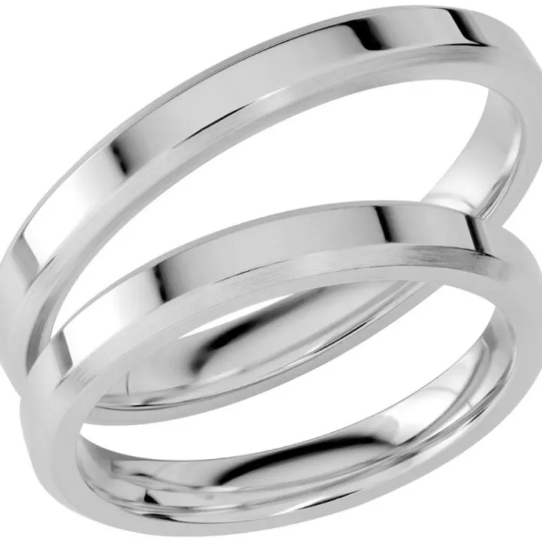 Slät vitguldsring med fasad kant på sidan, Sign of love SR1052 tillverkad i vitt guld, vitguld, av Schalins ringar. Snygg som förlovningsring och vigselring eller som smyckesring.