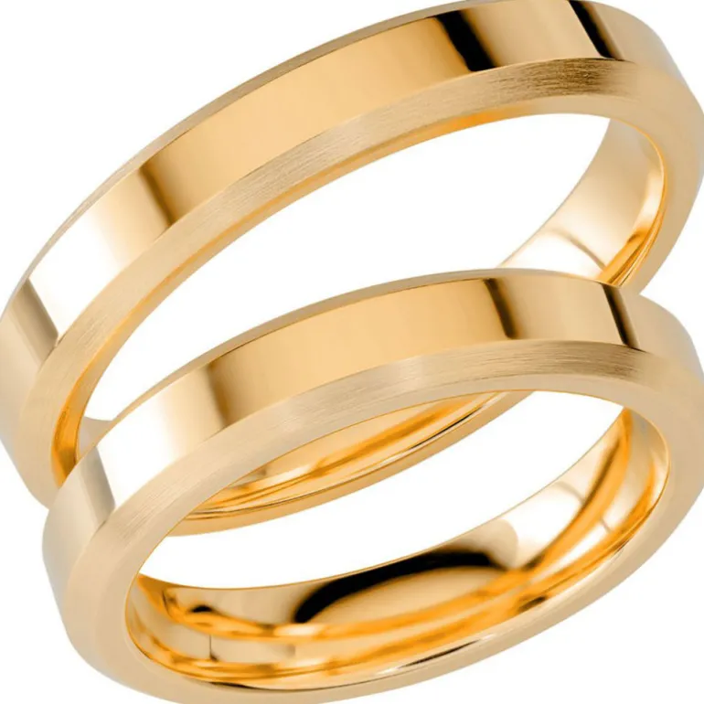 Guldring slät och blank upptill med avfasade matterade sidor, Sign of love SR1054 tillverkad av Schalins ringar.