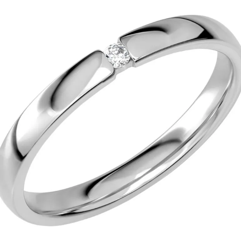 Sign of Love, smal lite tunnare ring i platina med diamant, briljant, i enkel fattning mitt på ringen.